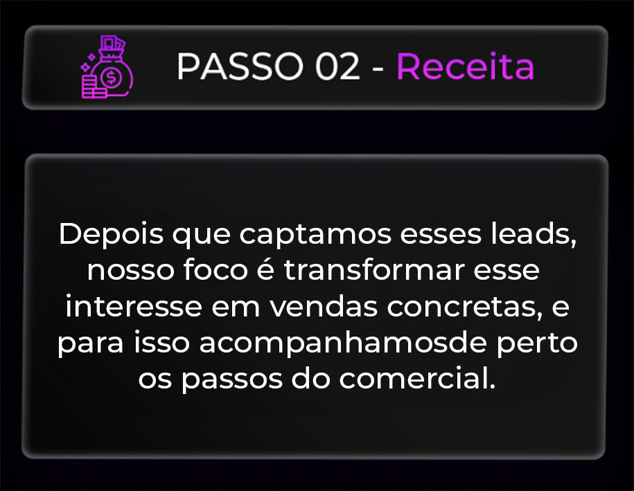 Nosso time é movido por resultados e trabalha ado a lado com nossos clientes para criar soluções sob medida, que transformam desafios em oportunidades e ajudam empresas a atrair mais clientes, vender mais e crescer de forma previsível.